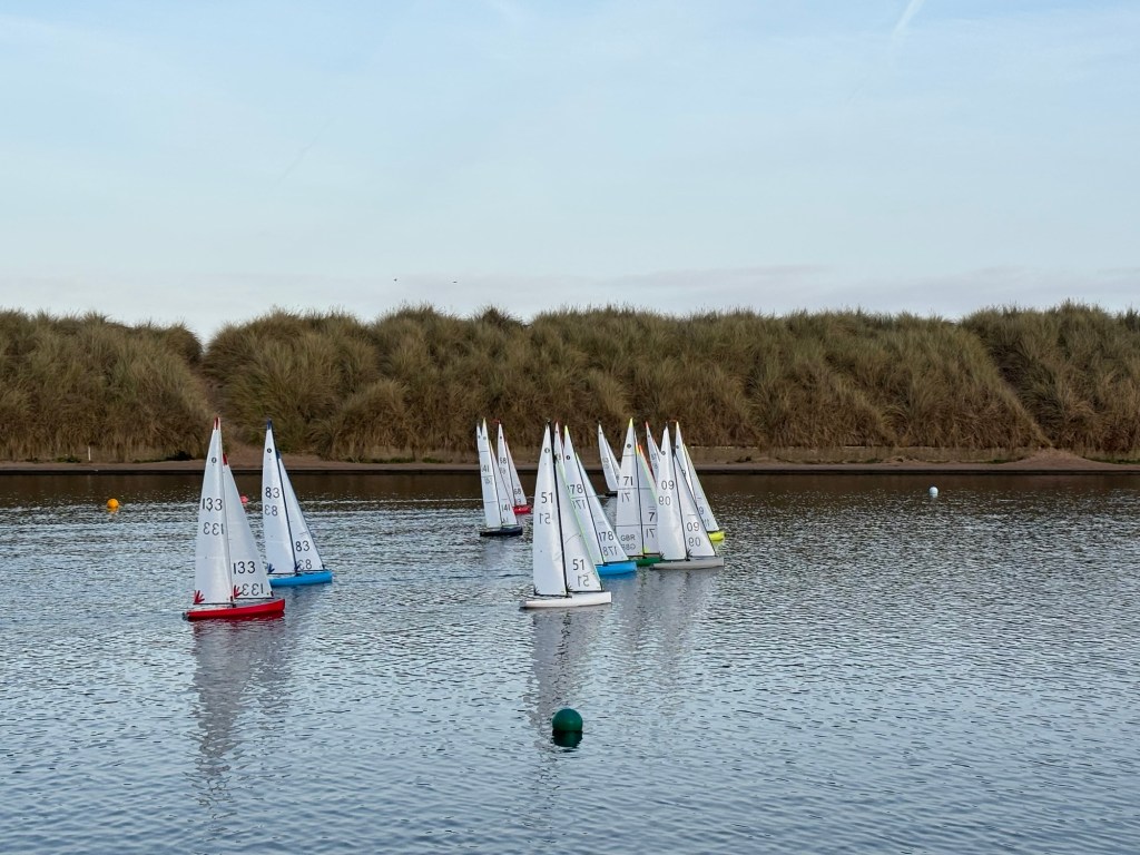A record entry for our Club Racing series was received with 9 yachts taking part. The wind was classic Fleetwood conditions from the West and moderate strength, so most yachts were in their 2nd suits of sails. Unfortunately we were again short of mates, so the bye boat skipper and other skippers helped each other to ensure that both banks of the lake had sufficient cover.