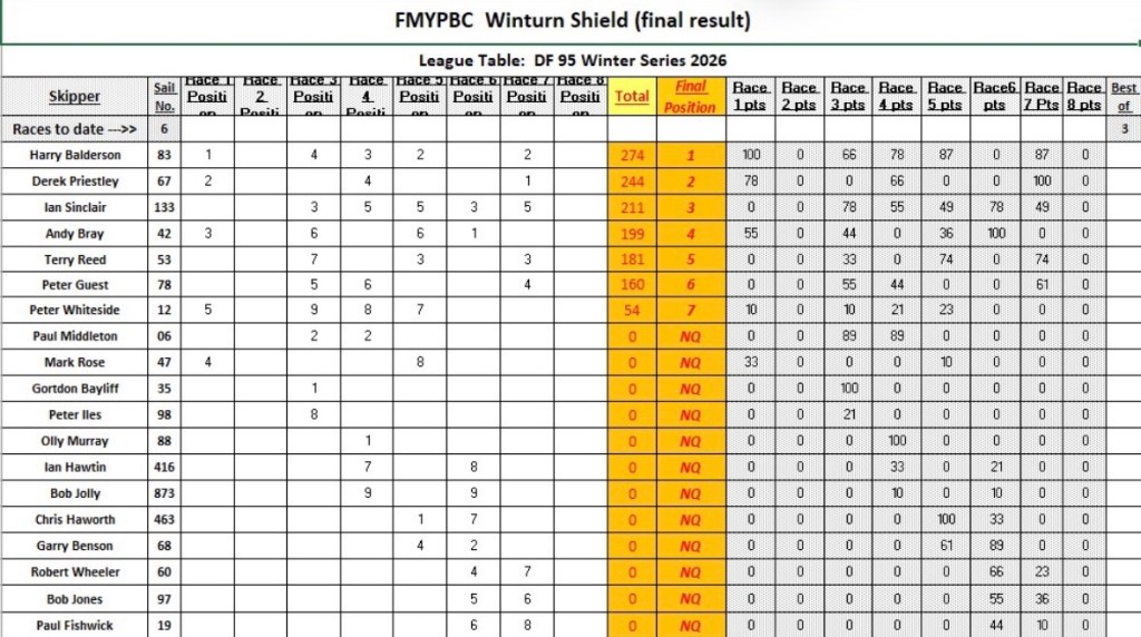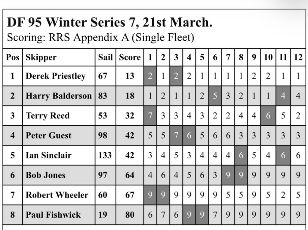 DF95 winter series results and Saturday racing Posted on 22/03/2026 by David Rose Share this: Share on X (Opens in new window) X Share on Facebook (Opens in new window) Facebook More Print (Opens in new window) Print Email a link to a friend (Opens in new window) Email Like Loading...