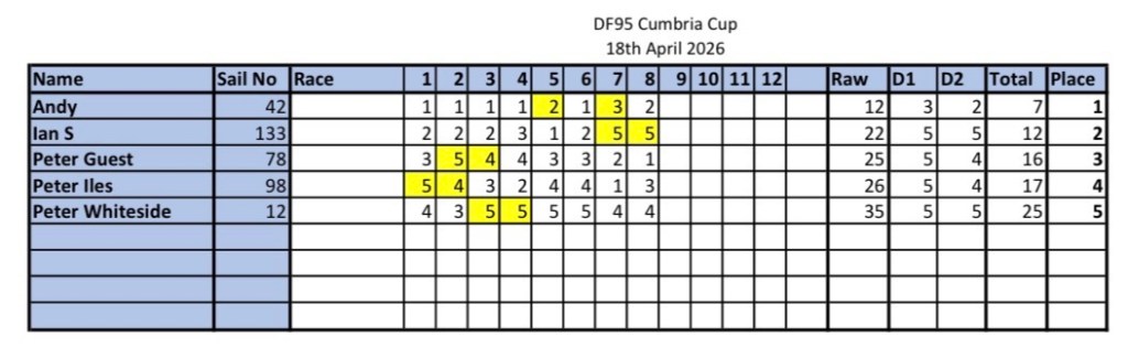 Five DF sailors turned up in the wind and drizzle today, and looking out of the clubhouse window at the waves racing down the lake and over the causeway we wondered why …
