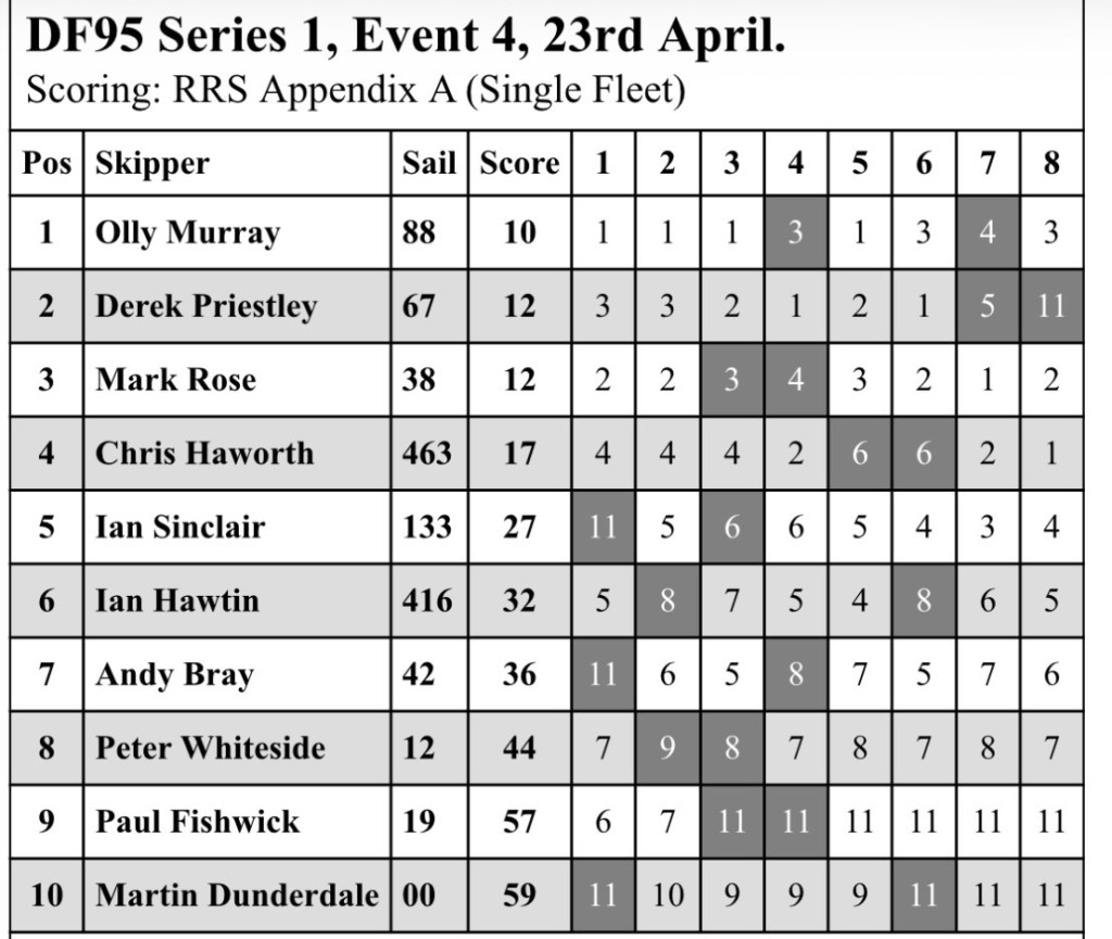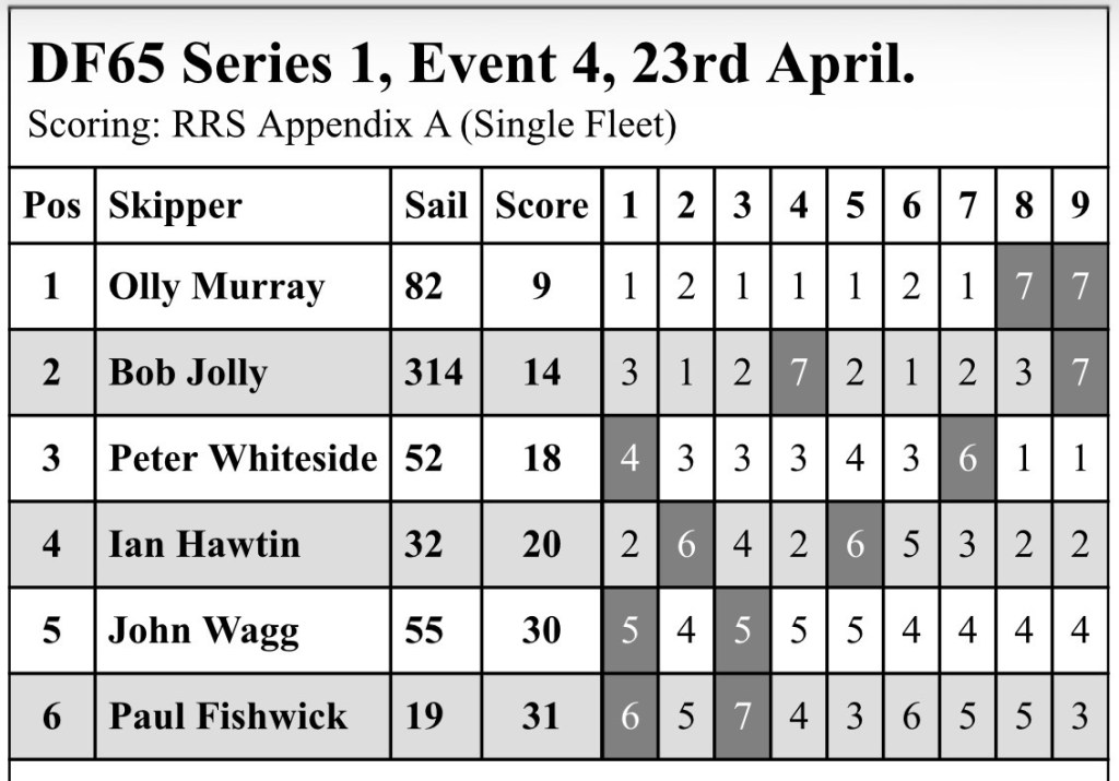 Two rounds of df racing today. The afternoon session dominated by Olly with the diddy boats beating Fleet captain Bob into second, with Peter W storming to third with two late victories.