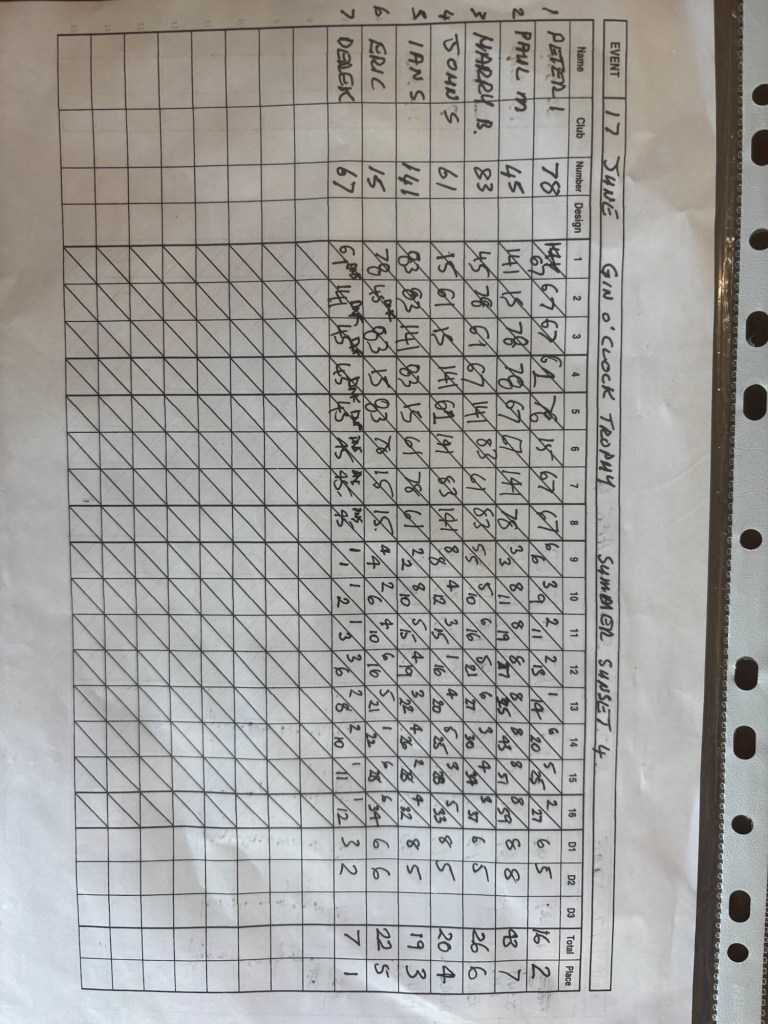 The wind was very light and blowing initially from the SE, then changing to the SW. Due to the low level of water and the presence of weed in the lake, some of our visitors decided not to attend. Two rounds were planned, but after 4 heats the lake was flat calm, so it was decided to finish sailing.